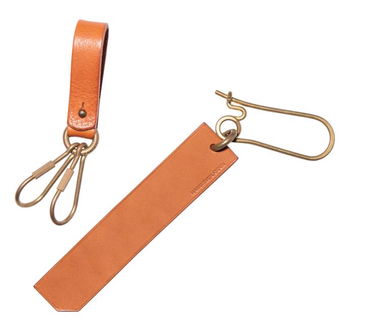シルバーアクセサリーなどで有名なナラティブ・プラトゥーンのキーリング。栃木レザ ーを長さ15.5cmの大胆な大型の短冊形フォルムにしているのが目を引く。