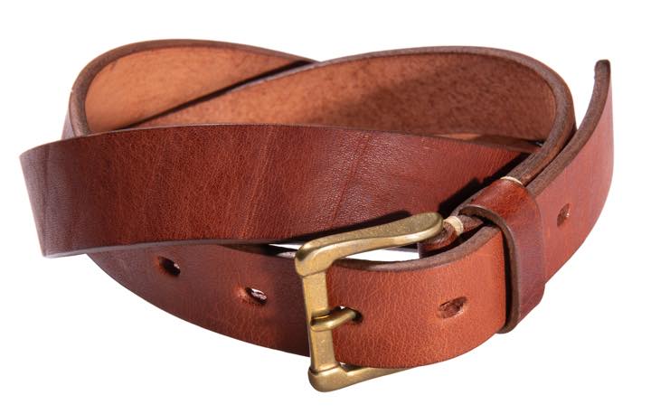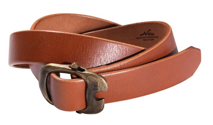 栃木レザーのベルトに取り付けられたバックルは、職人が1個ずつ手作りで磨き上げ、実は栓抜きとしても使えるというユニークな機能を備えている。ピン穴がないため、細かな調整が可能で緩みも少ない。