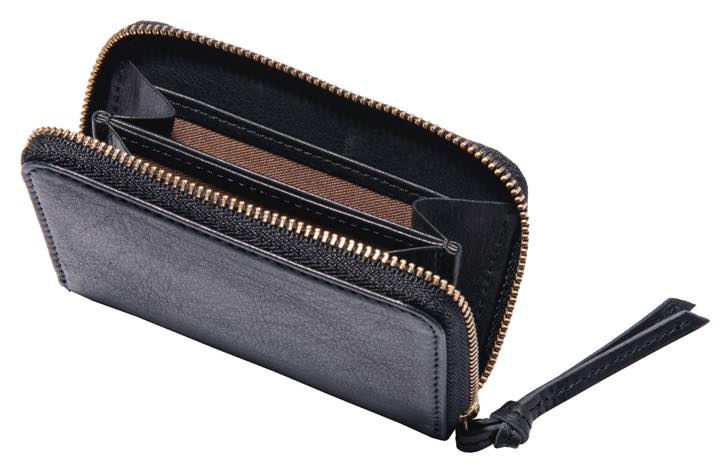 内部が3室に仕切られているので、コインだけでなく、カードや折り畳んだ札なども入れることができる。工夫次第で使い方が広がる、栃木レザー使用のミニマム小物だ