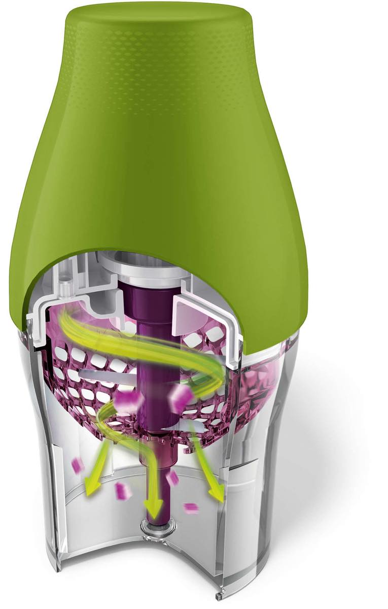 食材の水分がより多く残る野菜用のブレードでみずみずしさと栄養をキープ。冷凍フルーツなどフローズンフード用とフードプロセッサー用のブレードも付属。