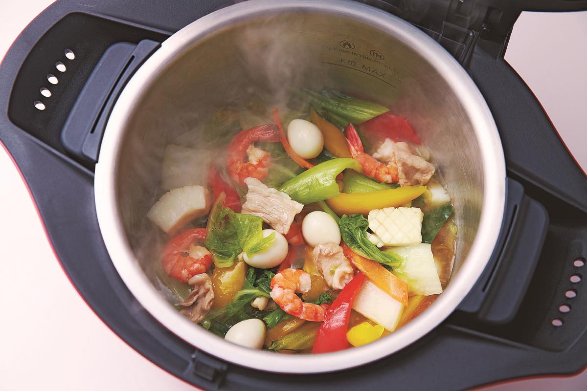 朝、材料をセットするだけで晩ごはんには熱々の料理が食べられる全自動調理家電の小サイズ(1.6L)が進化。かき混ぜや火加減も全自動で、野菜のうまみや栄養を逃さず調理。