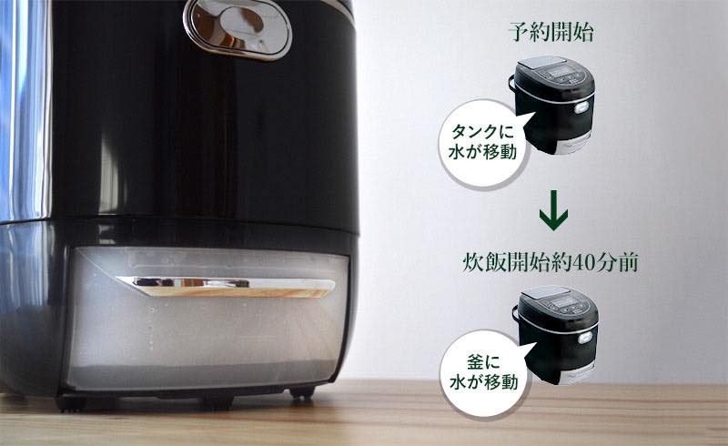 ▲使い方も通常の炊飯器と同じ。研いだお米と水を釜に入れ、ボタンを押すだけ。途中で水を入れるなどの作業も必要なし