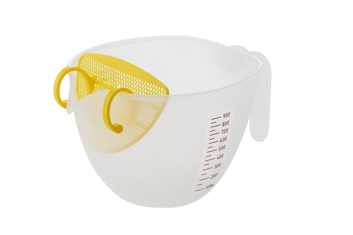卵を混ぜる、量る、こす、器に注ぐ作業がこれひとつでOK。カラザ(卵のどろっとした塊)もキャッチして捨てられる。なめらかな茶碗蒸しやプリン作りに便利。食器洗い乾燥機に対応。