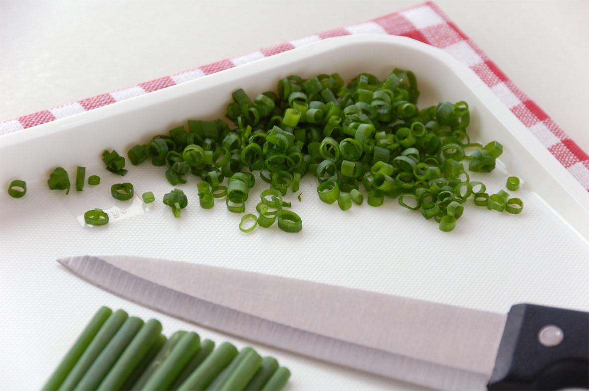 ▲タレに浸った加工食品や、ぽろぽろ散らばりがちな薬味もまな板の上にキープ。裏表両面使えて、肉・野菜と使い分けられる