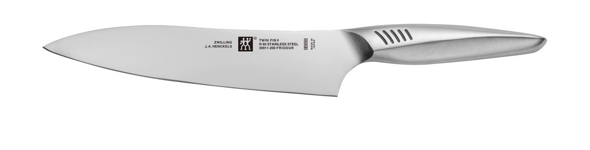 オールステンレスナイフ「ツイン フィン」の進化版「Ⅱ」が新登場。刃こぼれしにくくサビにくい新鋼材を採用。ハンドルも持ちやすく進化。