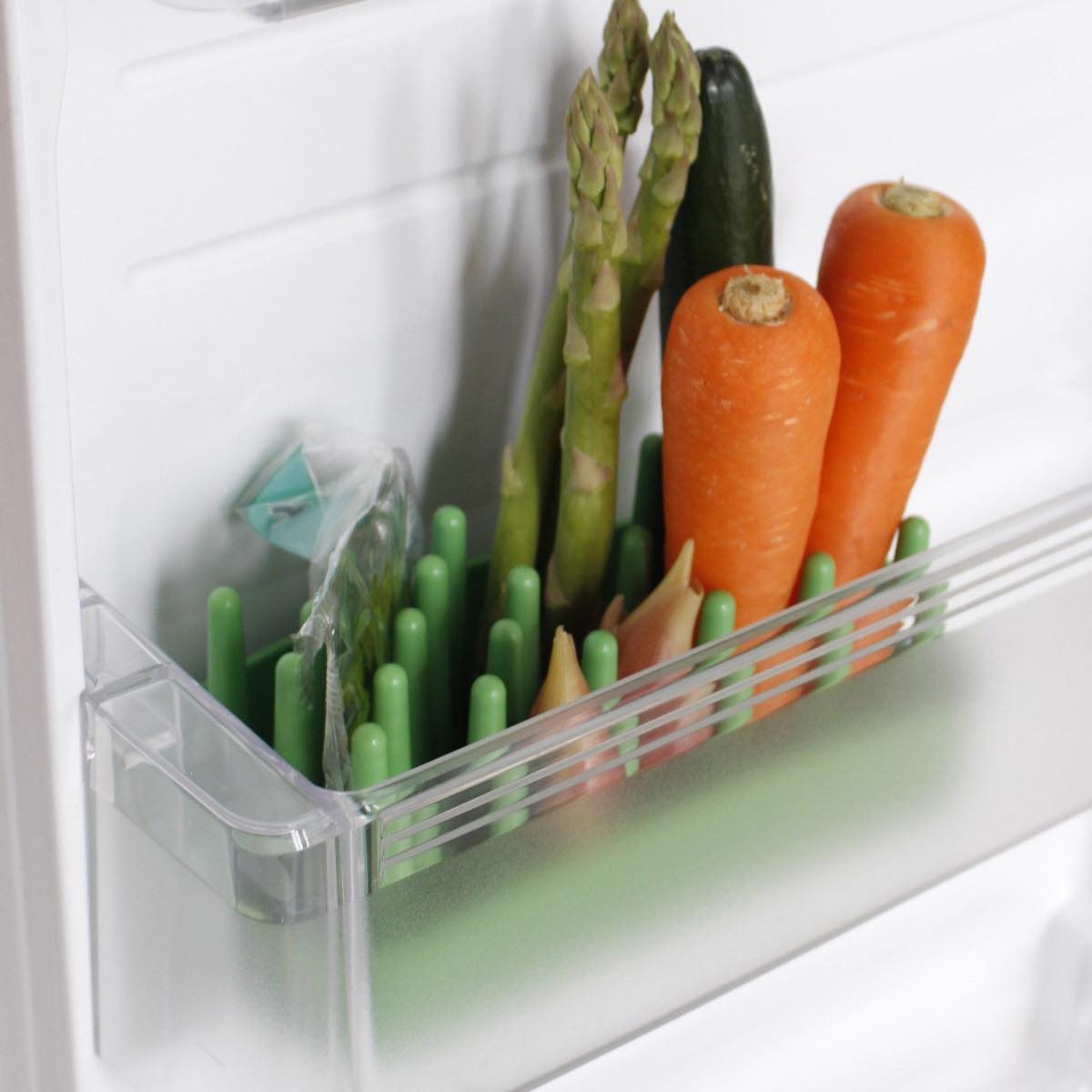 ▲立てて保存すれば冷蔵庫もすっきり。にんじんなど太い野菜と、アスパラなど細い野菜を立てる2つのパーツに分かれている