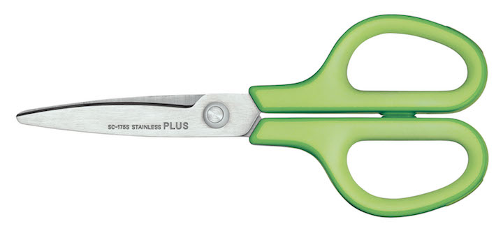 特殊なカーブを描いた湾曲刃で、刃の根元から先端まで一定の切れ味を保つのが、プラスの「フィットカットカーブ」。登場時はメディアでも大きく取り上げられ、数十年ぶりにご家庭の常備ハサミが入れ替わった、と言われるほどの大ヒット商品となりました。500円以下なのに切れ味はシャープで使いやすい。まさにご家庭用としてオススメの逸品ハサミです。