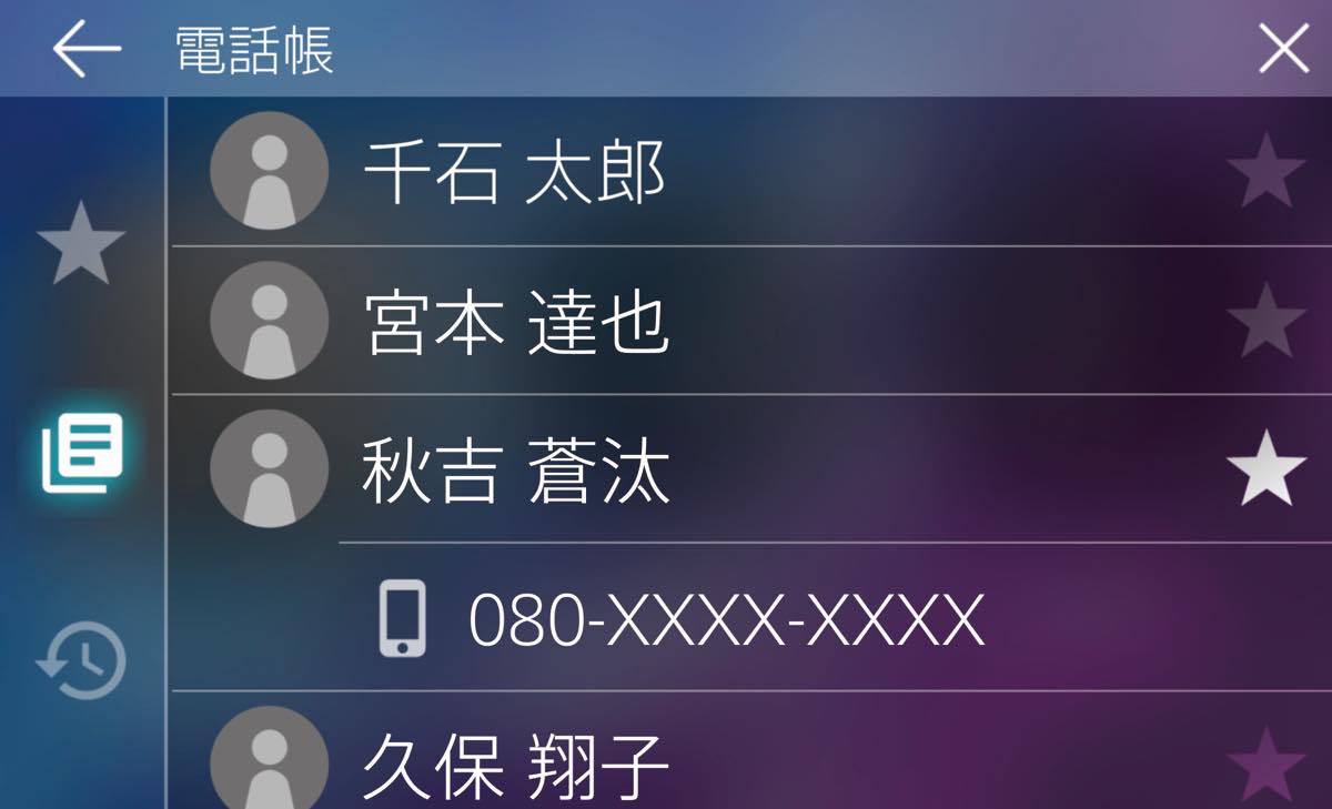 ▲かかってきた電話をワンタッチで着信し、ハンズフリー通話も可能。電話帳からの呼び出しや発信もできる