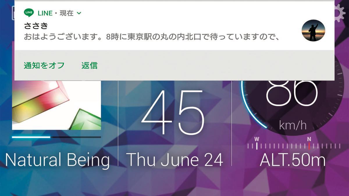 ▲操作ボタンを押すだけでスマホに届いたメッセージを読み上げる。LINEも含めた8種類のアプリに対応