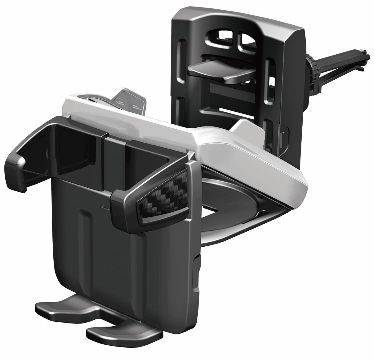 畳んだときはスリムなスマホホルダーとして、前に開くとドリンク&スマホホルダーと2WAYで使える。手帳型ケースに入れたスマホにも対応しており、タッチもできる。ドリンクは缶やペットボトルを入れられる。