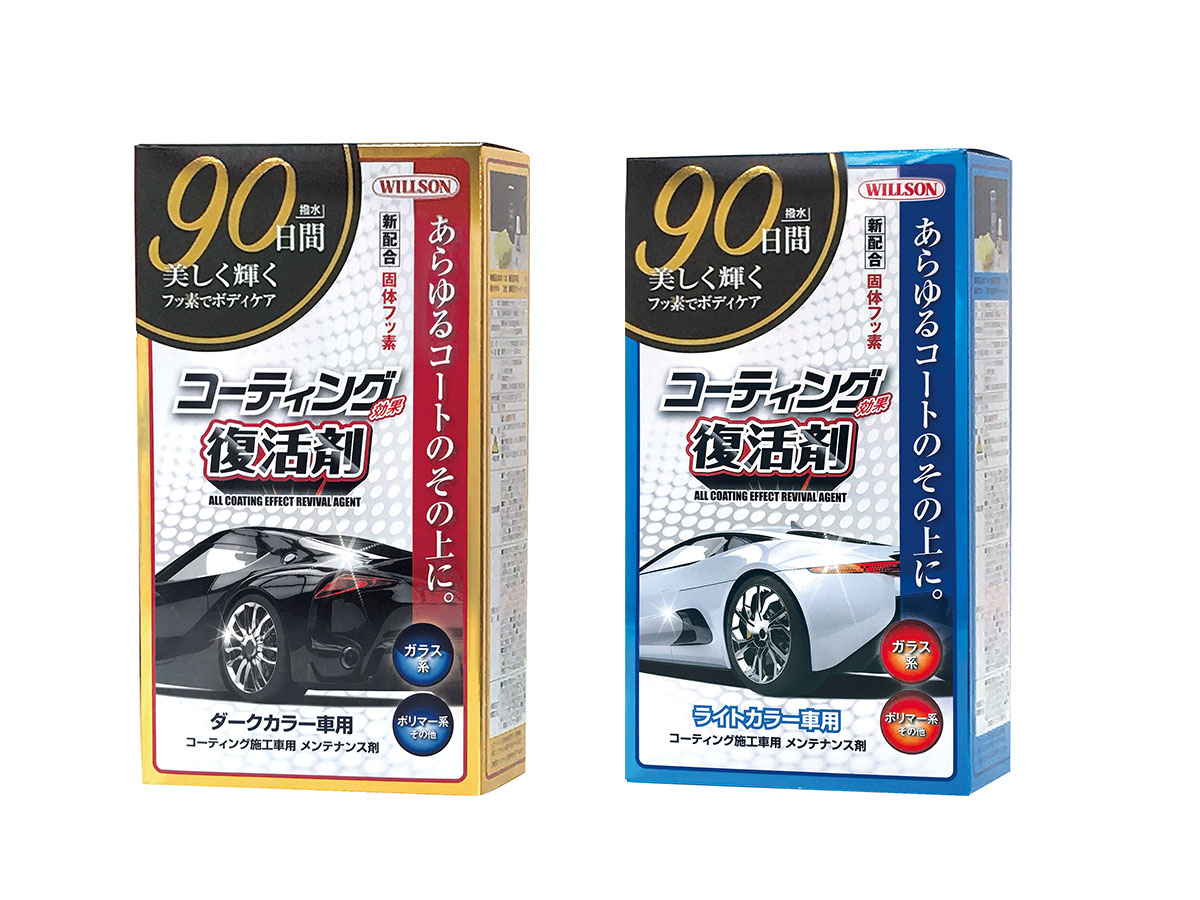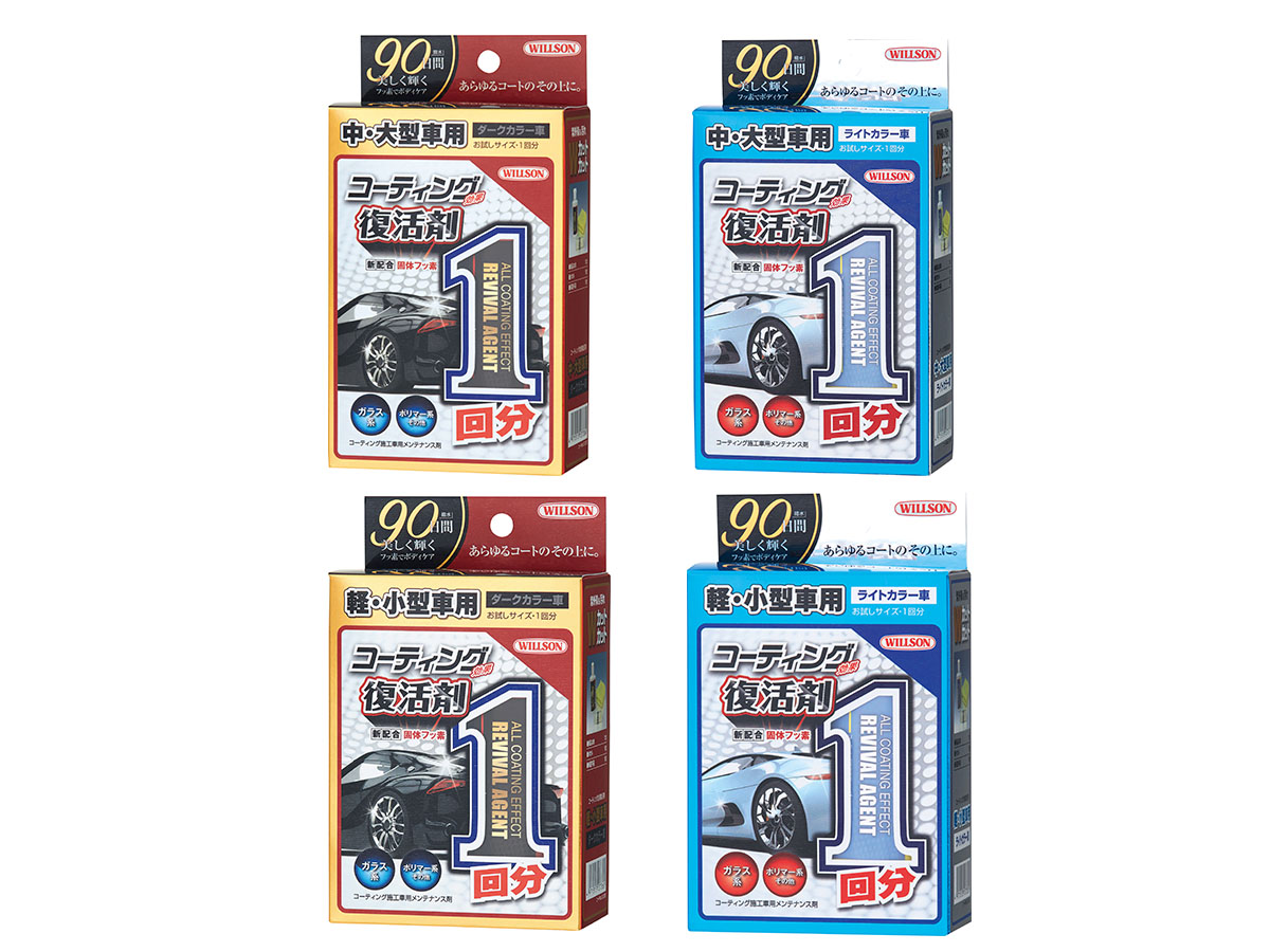 コーティング施工車に長期間乗っていて、効果が落ちてきたなと思ったらぜひ! コ ーティング被膜効果が復活し、固体フッ素の性能である90日の撥水効果も得られる。通常版のほか、1回分のお試し版もあり。