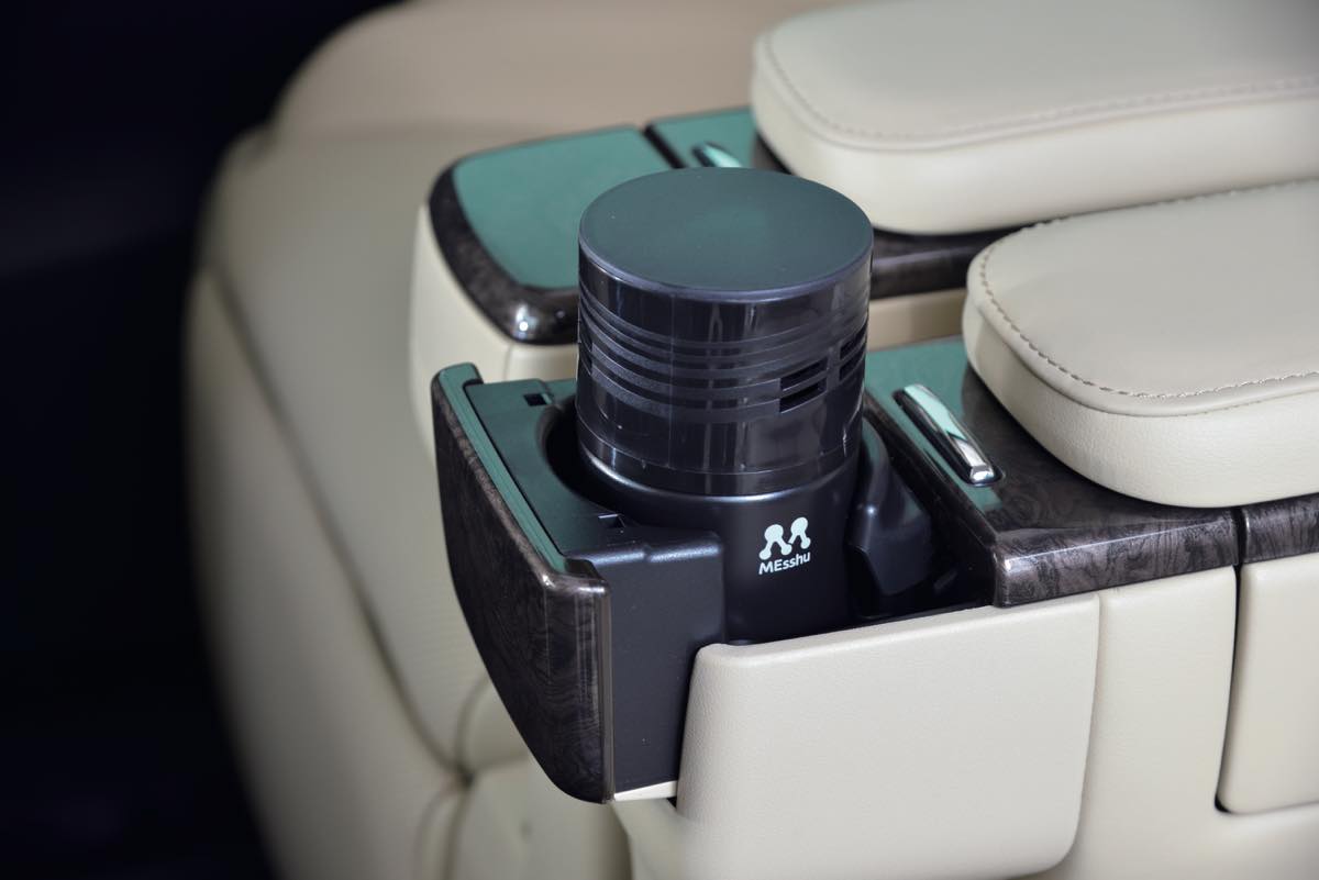 電動ファンにより安定化二酸化塩素を車内の隅々まで拡散。悪臭の元を徹底消臭する。振動感知により90秒ファンが作動して、その後10分停止を繰り返す。ドリンクホルダーに収まるサイズなので使いやすい。