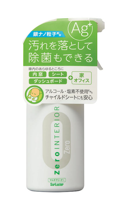 車内の布製シートや樹脂製の内装、内窓にスプレーし、クロスで拭き取るだけでOK。銀ナノ粒子が雑菌の繁殖を抑制し、嫌なニオイを元から抑える。カビにも効果を発揮する除菌剤も配合している。