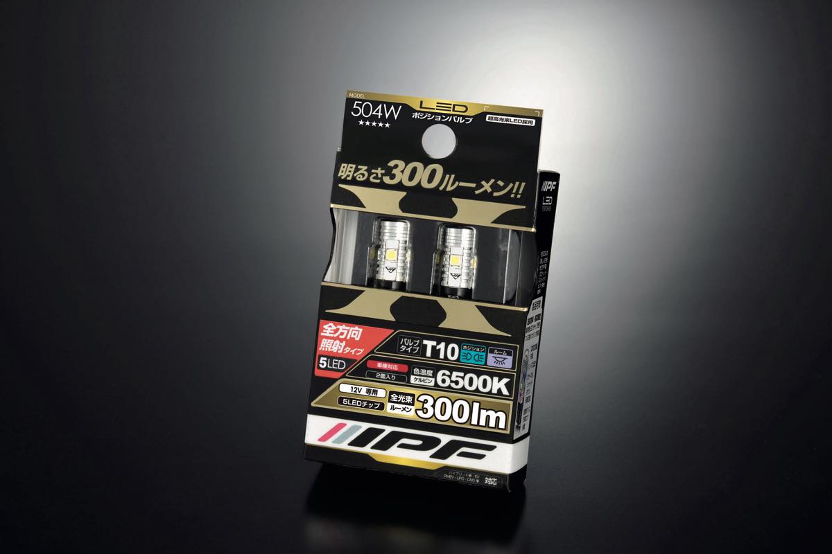 「LED ポジションバルブ 504W 300lm ウェッジ 6500K(504W)」(実勢価格:6400円前後)