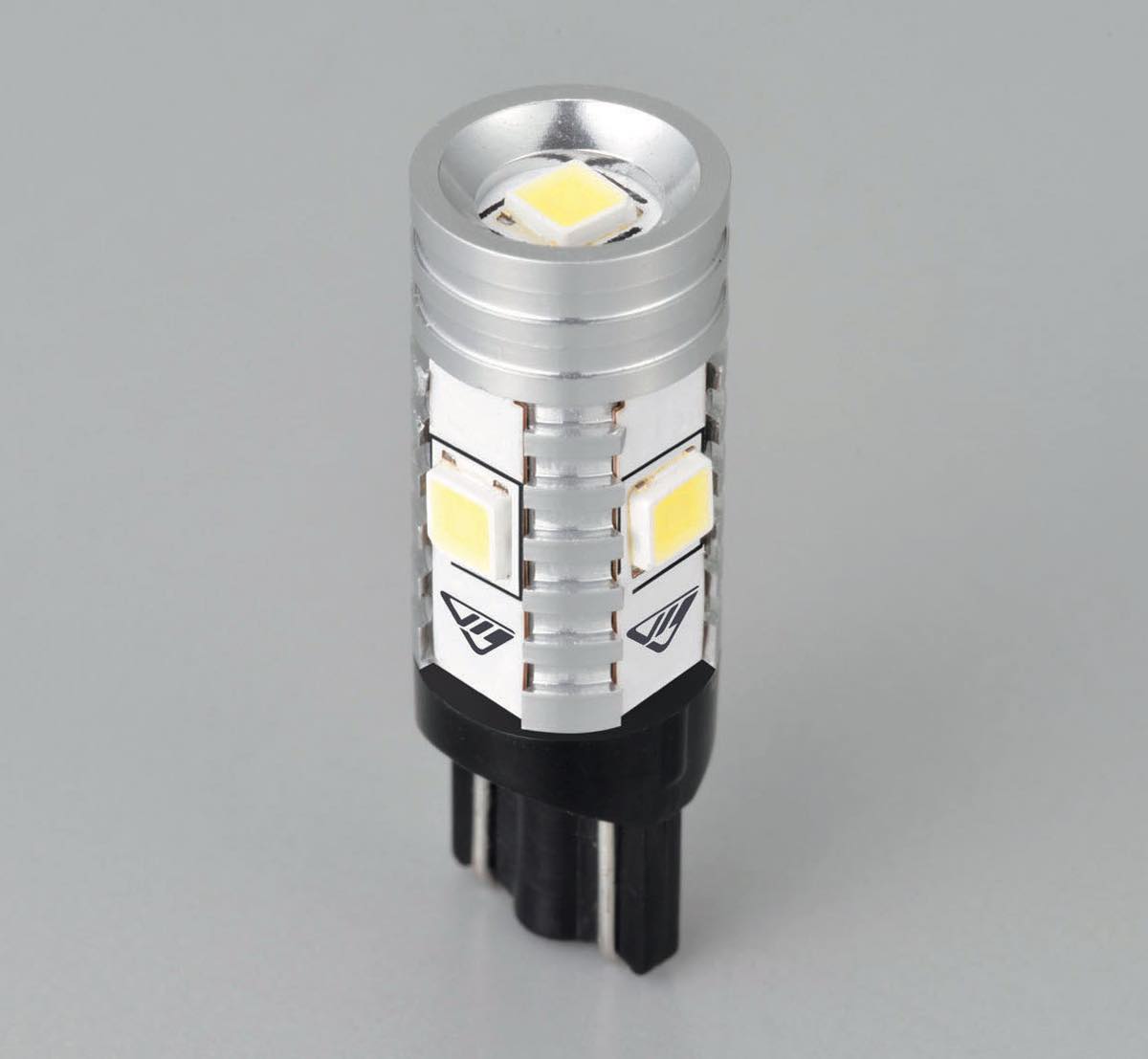 超高輝度のLEDを5個搭載しており、300lm(ルーメン)の明るさを実現。6500Kの白色光で、白色ヘッドランプとの色合いもいい。電圧変動があっても一定の明るさをキープし、ラジオノイズの抑制などの機能も備える。