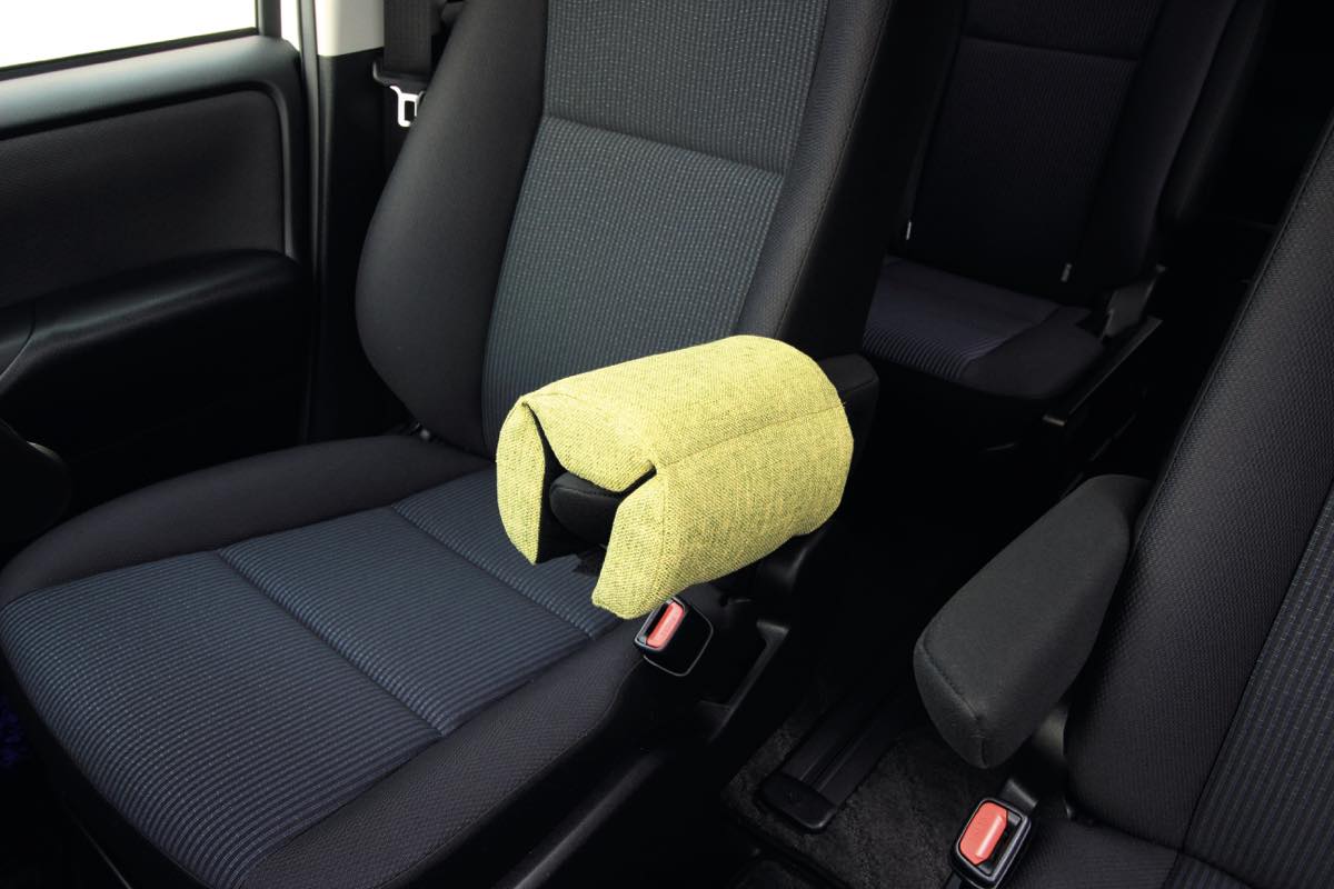 リネン調の生地を使用し、丸みのあるポップなデザインが特徴。中は厚みのあるウレタン製で、既存の肘置きの上に巻くとクッション性がアップして気持ちいい。カラーはグリーン、レッド、ブルー、ブラウンから選べる。