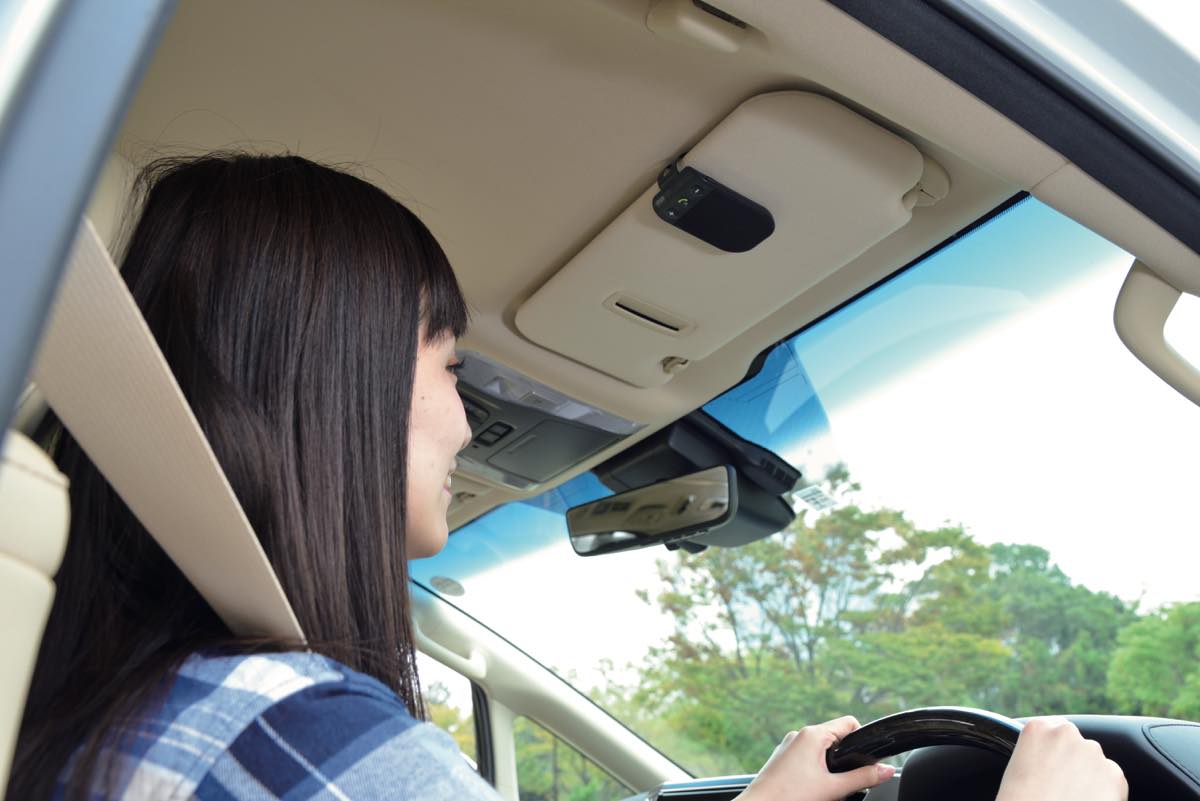 サンバイザー装着タイプのハンズフリーキット。スマホとはBluetoothで接続。イヤホンを付けずにスピーカーでハンズフリー通話ができるので安全。充電式なのでケーブル配線も不要で、スマートに使える。