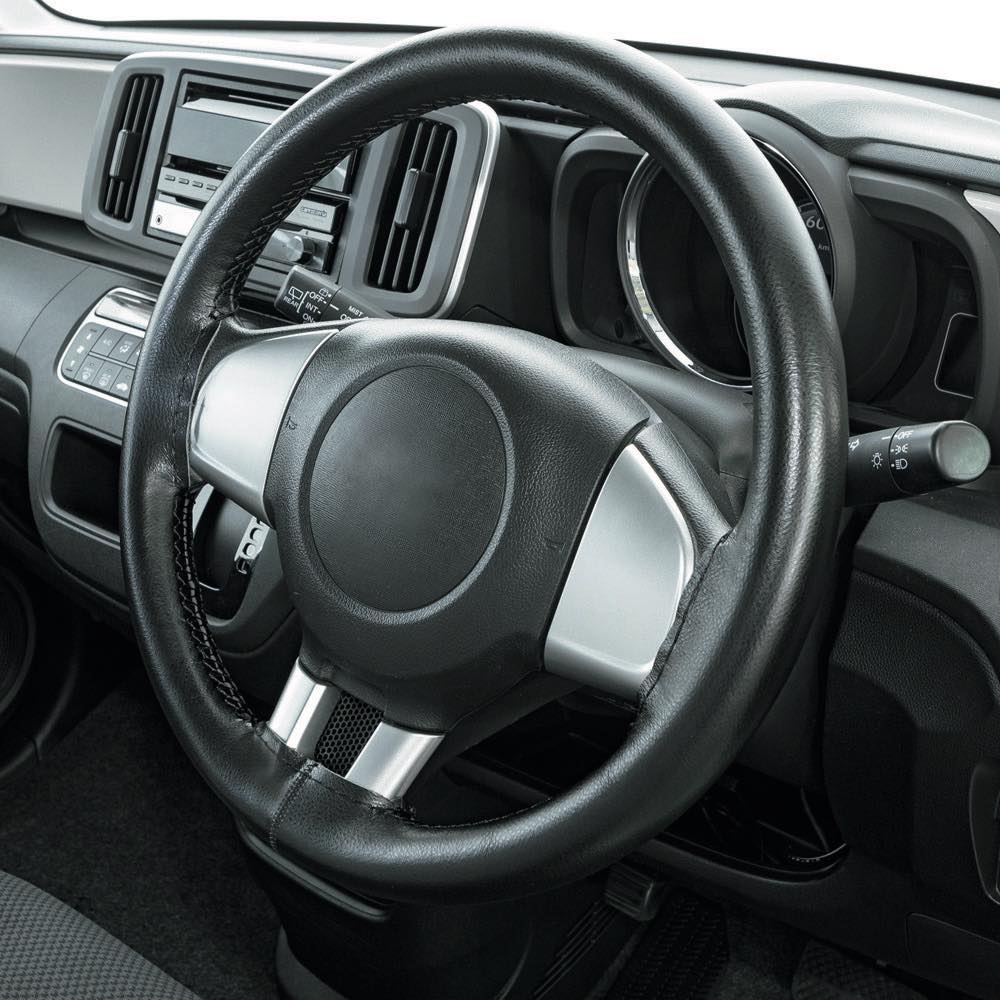 針と糸を使って、自分で編み込んでいくユニークな本革ハンドルカバー。ハンドル全体を覆うことができ、内側にすき間がないので、後付け感が少なく純正品のような自然な仕上がりが期待できる。ハンドルが太くならないのもグッド。