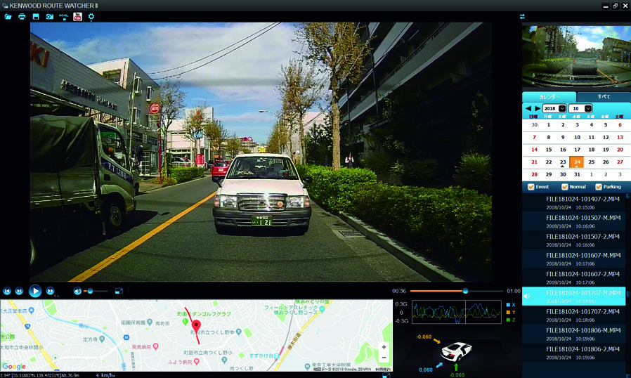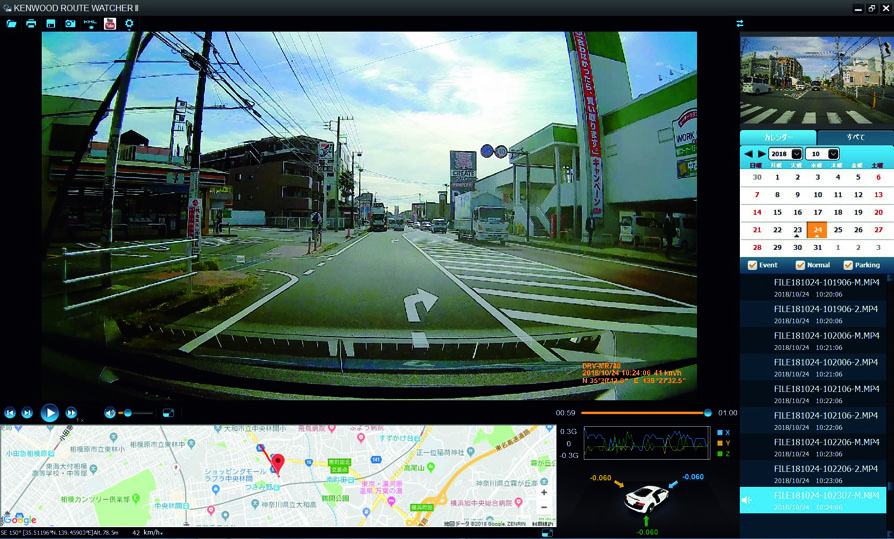 GPSの内蔵により映像とともに場所や日時、速度を記録。また、Gセンサーを内蔵していればX軸、Y軸、Z軸の動きを検知し、急ブレーキや急ハンドルの動作が推定できる。機種によって異なるが、これらのデータは専用ビュワーソフトや専用スマホアプリ、カーナビなどで確認が可能となる。
