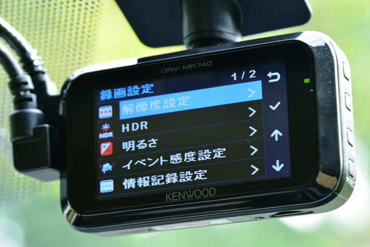 記録画素数が大きいほど高画質。廉価版ではHD(1280×720)が多いが、それよりも上のフルHD(1920×1080)が現在の標準。周囲のクルマのナンバープレートが読み取れる。また、画質にこだわったモデルでは3M(2304×1296)、WQHD(2560×1440)を採用し、ビデオカメラ並みの美しさだ。