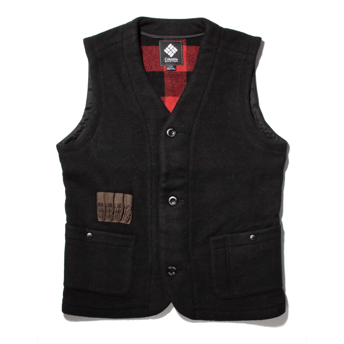 アウトドアで培った技術はそのままに、より普段使いできるデザインに落とし込んだコロンビアのアーバンライン「コロンビアブラックレーベル」。そのラインナップに並ぶ「アイスピナクルベスト」は、素材にダッフルコートやピーコートで用いられることの多いメルトン生地を使用。なめらかな肌触り、軽い着心地でありながら、風を通しづらい目の詰まった厚手の生地なので、とても暖か。右ポケット上の薬莢ホルダーがハンティングのテイストを醸し出し他にはないデザインに仕上げられています。
