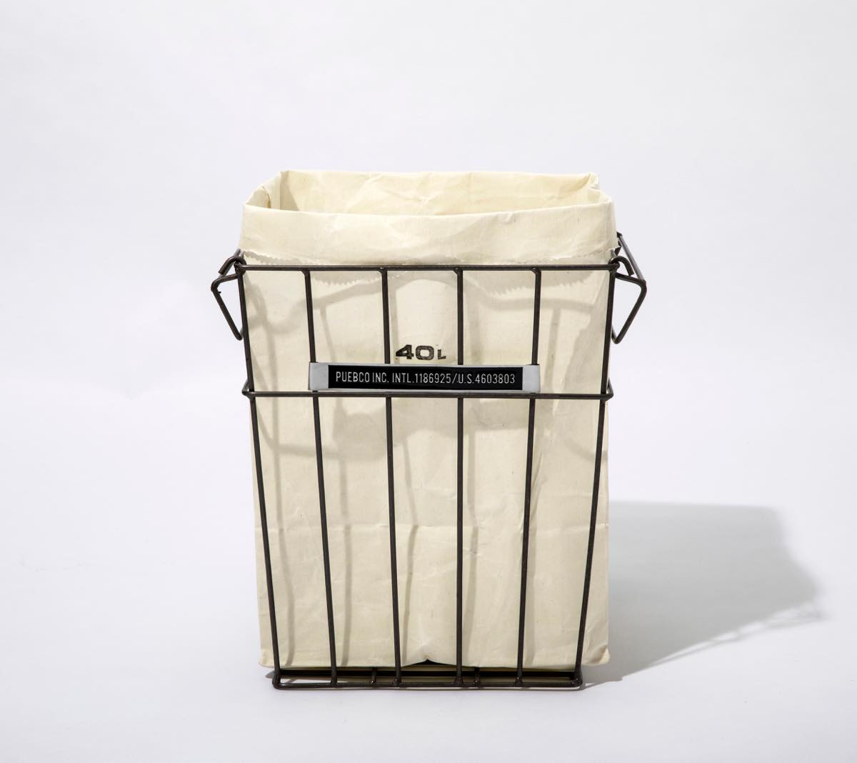 デザイン性の高いインテリア雑貨を手がける日本のブランド、プエブコのスチールワイヤー製トラッシュボックス。ワックスドコットン製のグロサリーバッグを重ねれば、部屋に堂々と置ける洒落たゴミ箱に。収納ボックスとして衣類などを入れておくのもOKだ。H40xW34.5xD33.5cm(WIRE TRASHCAN)