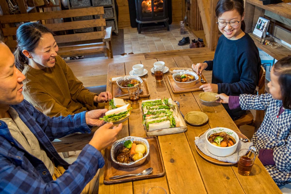 ▲家族みんなで作った料理を、みんなで食べる。食事の時間は楽しみのひとつ。 子どもたちも、薪ストーブのある自分の家が好きだと話してくれた
