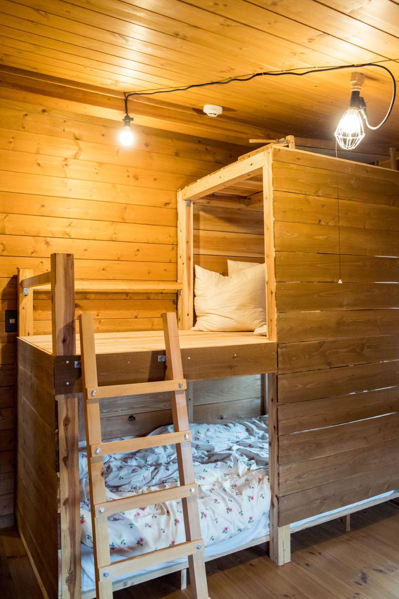 ▲リビングのテーブルやイスはもとより、大型ラックや二段ベッドも自作。さらに庭の物置小屋や燻製器までD.I.Y.という川辺さん。すごい!