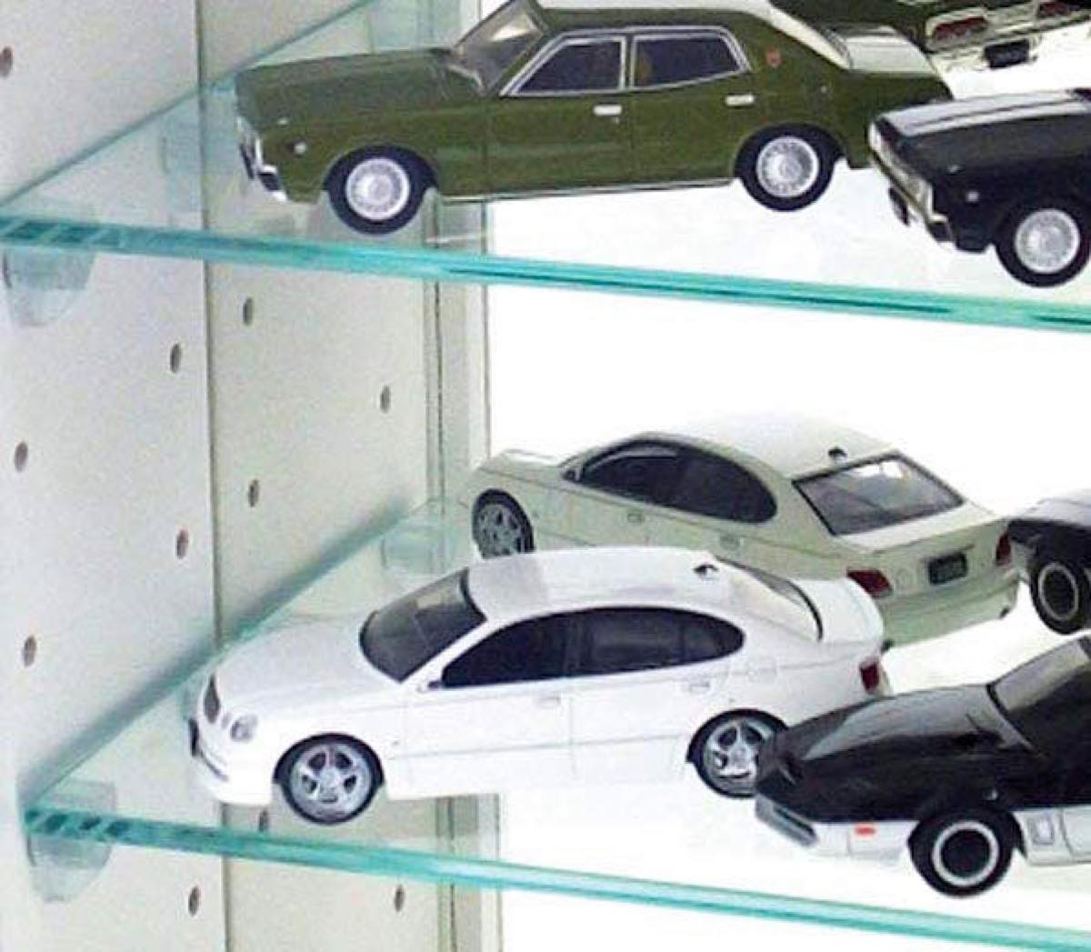 ▲両サイドと天面に窓を設けている。ミラー仕様のバックボードと相まって、コレクションが見やすい