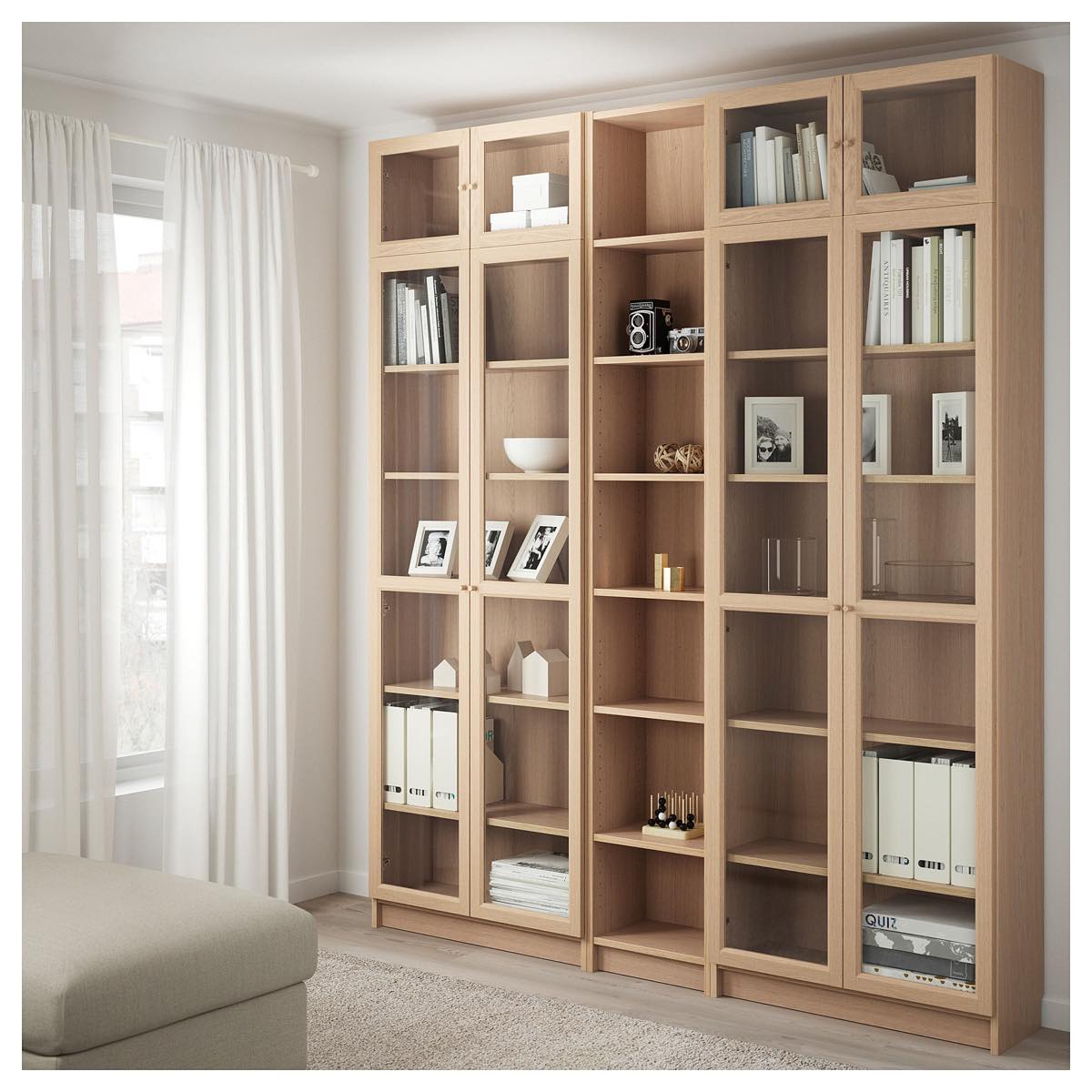 シンプルな外観ながら、ガラス扉と可動棚を備え、多彩なコレクションに対応する大型シェルフ。写真のホワイトステインオーク材のほか、素材や色が違う3種のバリエーションを用意。