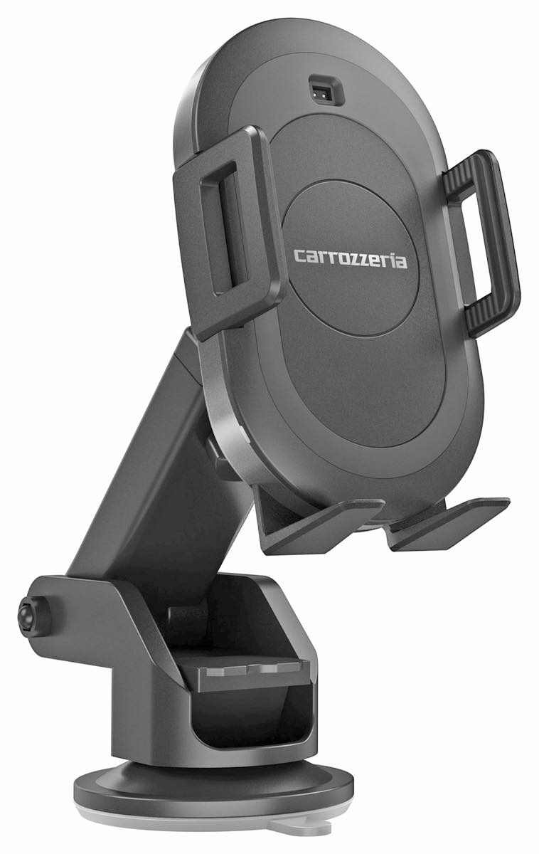 電動アームとQi(ワイヤレス充電)を搭載しており、アームを手で閉じる、ケーブルを手で差す、といった煩わしさがない。後方アームの可動域も広く、置き場所の自由度が高い。2系統シガーソケット用USBチャージャーとUSBケーブルが付属されている。