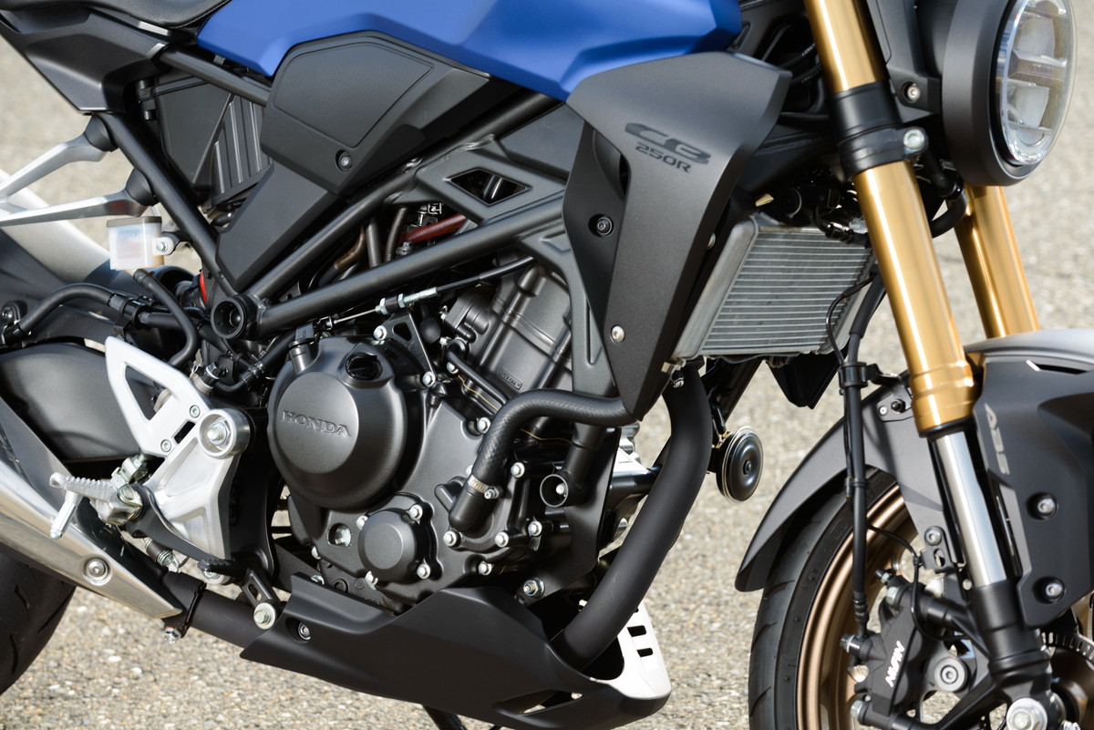 なかでも人気が高いのが250ccモデル。先日マイナーチェンジが施され、「マットパールアジャイルブルー」の新カラーが追加されるとともに前後サスペンションがブラッシュアップされて足つき性が向上しました。エンジンは単気筒で27馬力を9000rpmで発揮しています。