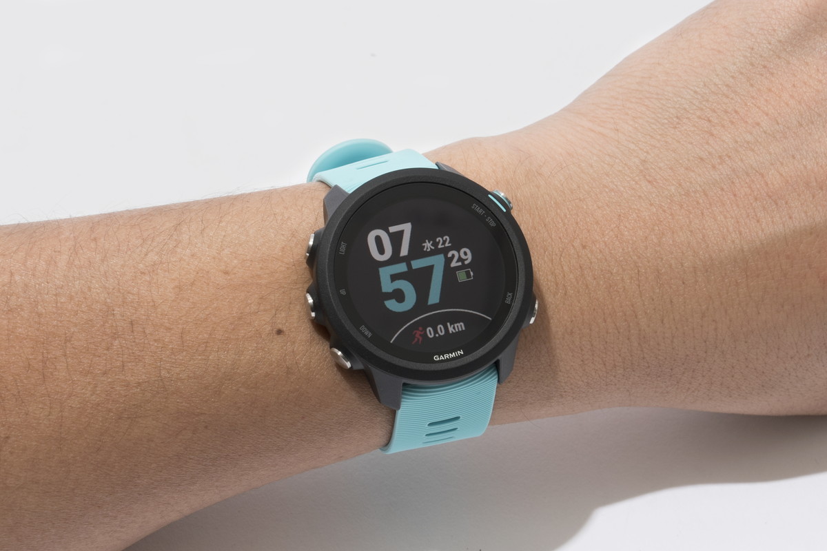 ランニングを楽しむ人にはおなじみ、ガーミンのGPSランニングウォッチ。今回紹介するモデルには音楽再生機能も搭載されているので、トレーニングにもタウンユースにも最適です。ターコイズカラーのバンドが腕元のアクセントになり、爽やかな夏の着こなしを演出してくれますよ。