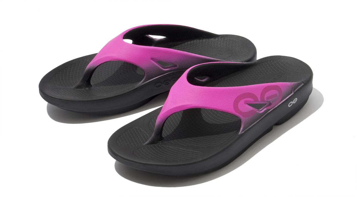 今回紹介するのは、2011年に米国で誕生したリカバリーシューズブランド、ウーフォスのトングサンダルです。独自素材「OOfoam」で成型することで、着地による足裏への衝撃を軽減。鼻緒が柔らかく、フットベッドは土踏まずをサポートする形状になっているから、長時間履いていても足が痛くなりにくいんですよ。水にも強いので、ビーチサンダルとしても使えます!