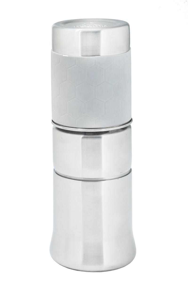 「ボイラー、バスケット、サーバー、カップが、直径8.6cm、高さ24cmの水筒サイズに収まるモカポット型の直火式コーヒーメーカーです。キャンプの朝にエスプレッソが飲みたくなったら、バッグから取り出してすぐに作れるし、家でキャンプ気分を味わうのにもいいですね。クラウドファンディングサイト「CAMPFIRE」で販売中」(小口さん)