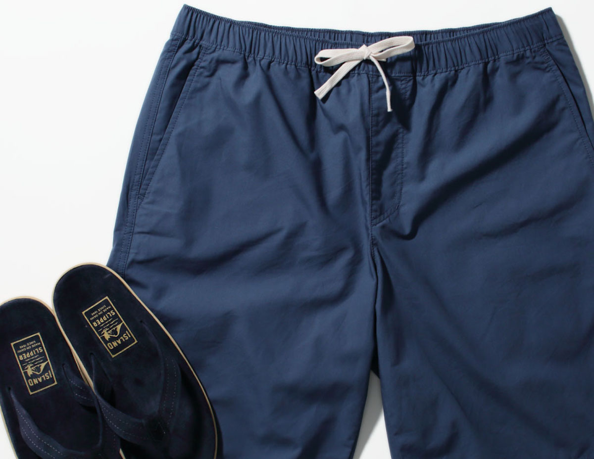 シャツにも使われる柔らかいブロード生地をそのまま使っていて、サラッとした履き心地が気持ち良いショートパンツです。ウエストはゴムだけでなく紐が通っているので、細やかなフィット感の調整が可能。カラーリングが豊富で価格もお財布に優しいので、レジャー用、部屋着用とシーンによって使い分けるのもオススメです。
