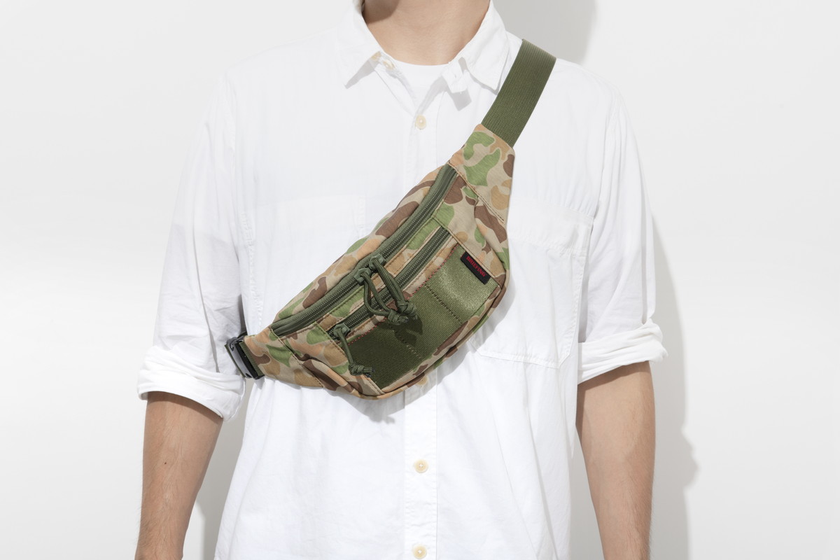 日常使いやトラベルシーンに最適なブリーフィングの人気ライン「JOINT COLLECTION」のボディバッグ。今季は、光沢を抑えたアーミーライクなダックハンターカモ柄が新色として登場。存在感がありながら、渋めのカラーリングで汎用性が高いところが魅力です!