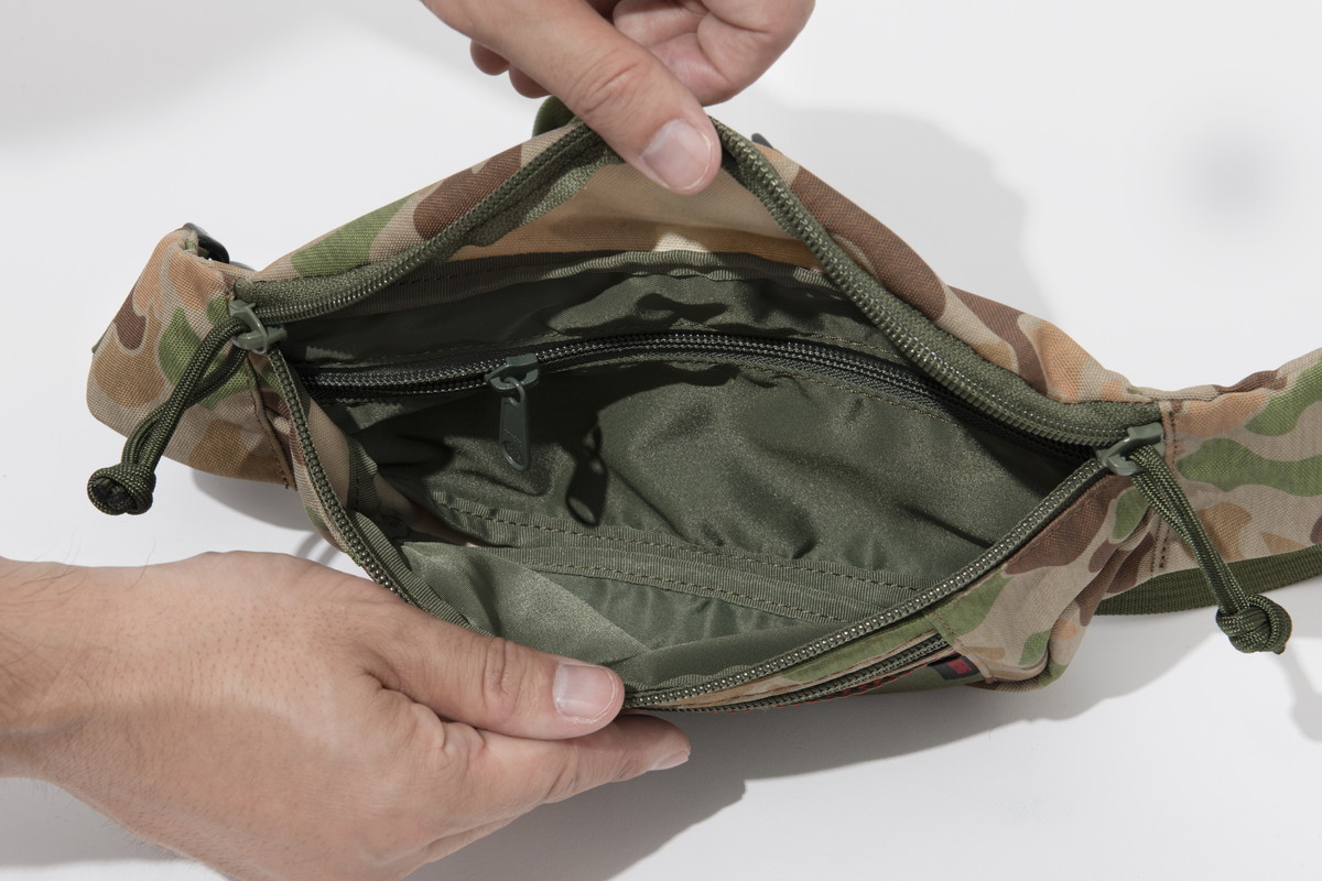 コンパクトながら外ポケットも内ポケットも付いているので実用的。内ポケットはファスナー付きで、小さなカギなどを紛失する心配がありません。ひと目でブリーフィングと分かるウェビングなど、アイコニックなデザインも好印象。フェスやアウトドアシーンにもぴったりですね!