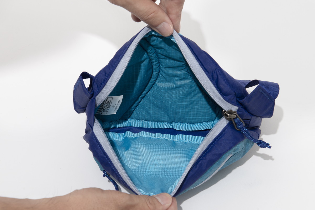 近所の公園やビーチなどで必要な物だけを入れて運べるよう、シンプルかつミニサイズに設計されています。とはいえ、パッド入りのバックパネルとソフトなヘリンボーン・ウェビングのショルダーベルトで、ウエストに着用しても肩から斜め掛けにしても身体にフィットするため、快適に使えますよ!