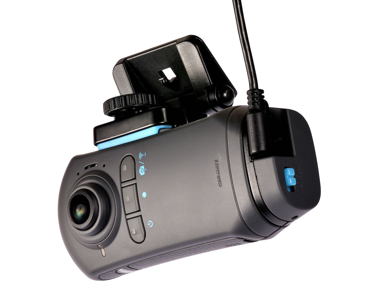 本体にディスプレイを持たないカーメイト「d'Action360S DC5000」は、専用アプリをインストールしたスマホ(iPhone/Android)と無線LAN接続して操作する。記録映像のストリーミング再生やmicroSDカードからのデータダウンロード、機能セッティング、手動録画操作などが簡単に行える。