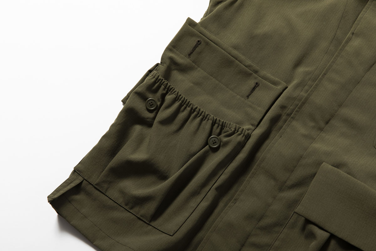 陸海空軍の戦闘服を統一する目的で作られたといわれるデザインは、まさに普遍的。フロントに配された4つのポケットはすべてマチ付きで収納性が高く、キレイなシンメトリーデザインゆえに、どんなスタイルにも馴染みます。さらに比翼とフラップでボタンを隠すことによる、洗練されたミニマルルックもポイント。タフでありながら佇まいも美しい、究極の機能美です。