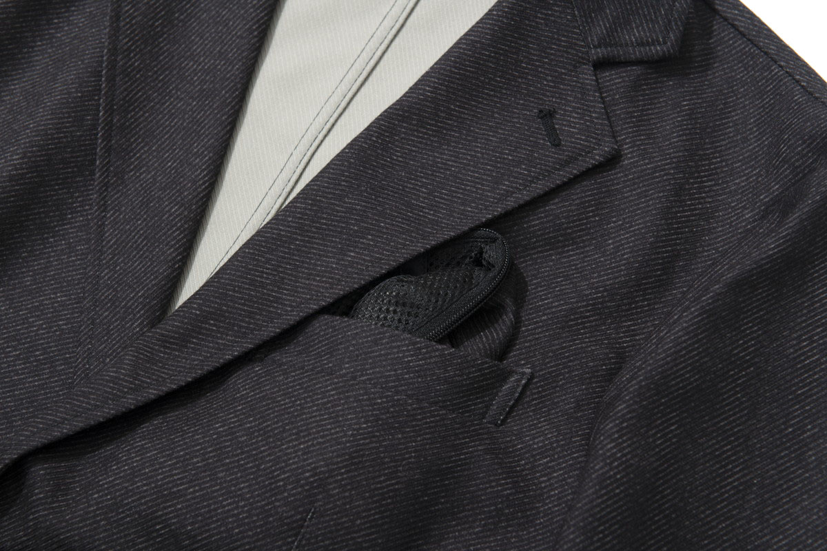 そしてこのセットアップ、パッカブル仕様という点が他の機能性スーツと違うところ。付属のポーチにコンパクトに収納できて持ち運びに便利。旅行カバンに忍ばせておけば、長期出張では2着目のスーツとして、プライベートな旅行ではレストランに行くときなど、いざというときに重宝します。