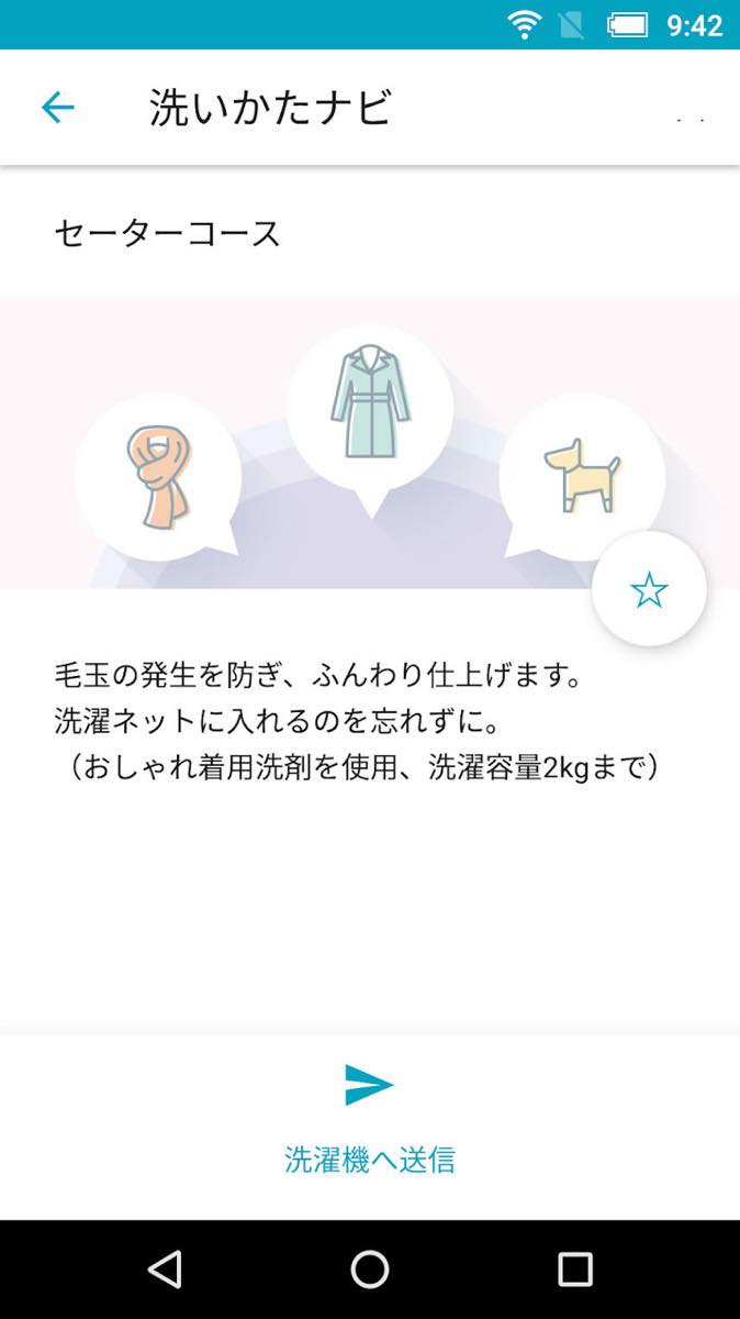 ▲衣類や汚れに合わせた最適な洗濯コ ースをアプリで確認でき、その設定を洗濯機に送信することも可能