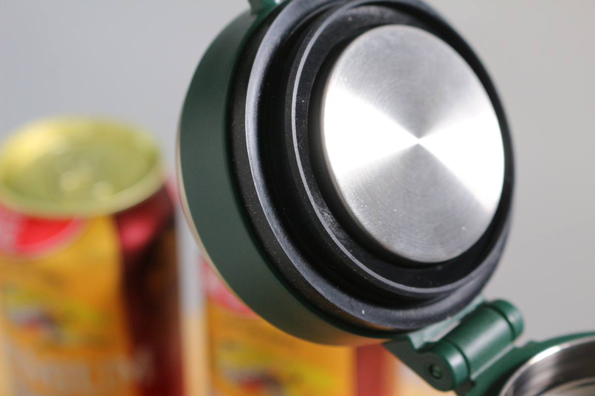ふた上部にはしなやかで深めのゴムパッキンが付いています。そして、ねじ込み式ではなく、上からしっかりと押さえるキャップを採用。密閉型のキャップは炭酸飲料を入れるとふたを破損する危険がありますが、グロウラーは絶妙に圧力を逃すため安全に持ち運べるというわけ。