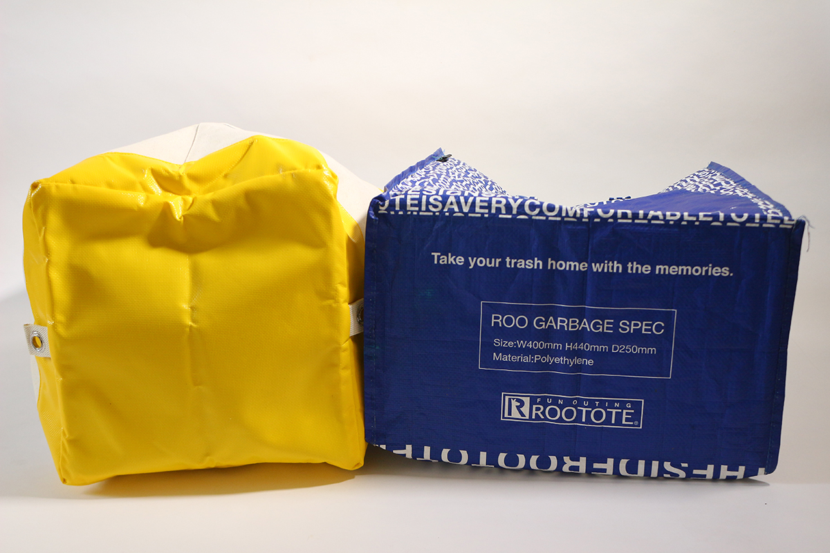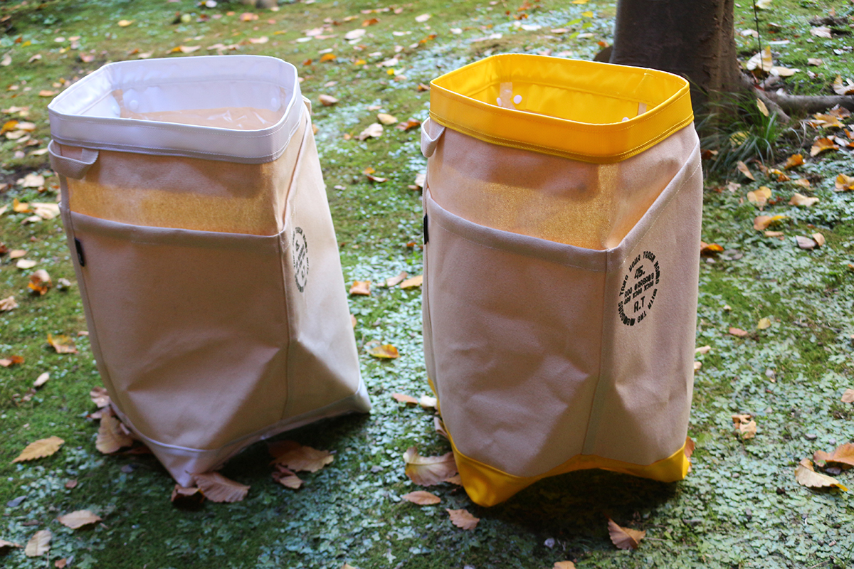 10年ほど前から愛用している私物のルー・ガービッジ(写真右)と比べてみました。従来モデルは長方形の底ですが、COTTON CANVASは正方形。このため広げるとバケツ型になるんですね。