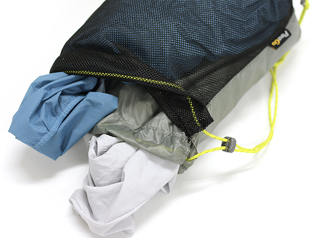小物類は用途別にざっくりまとめておきたいのですが、これがどうにもうまくいきません。まとめた袋の中身が何かわかりませんし、食器やウエアなどは、使用済みのモノと使用前のモノを分けておきたいので、そうなるともうひとつずつ収納袋を用意しなければならないし……などと迷いに迷っているわけです。
