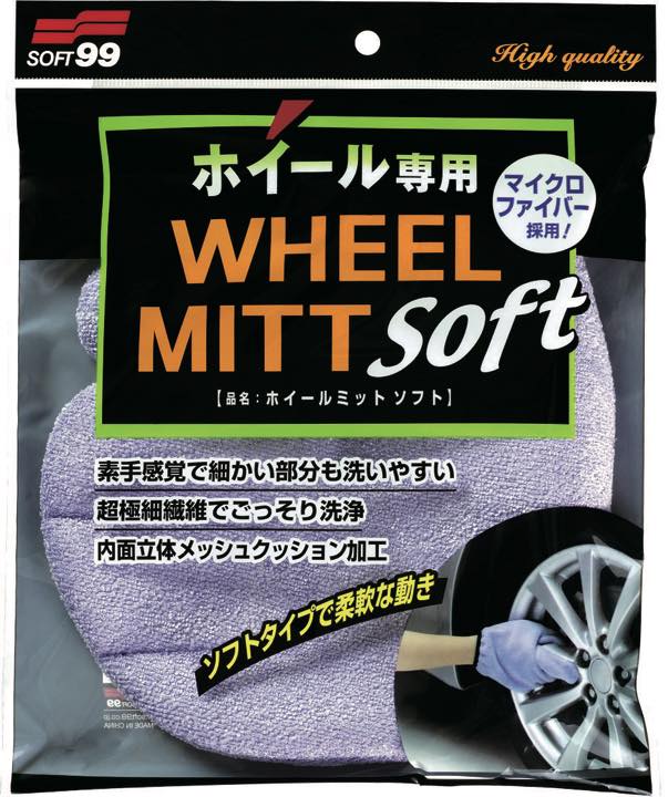 ▲柔軟性に富んだマイクロファイバーのミットをはめると、素手感覚でホイールを隅々まで洗える。厚手なので、突起物に当たっても手が痛くならない