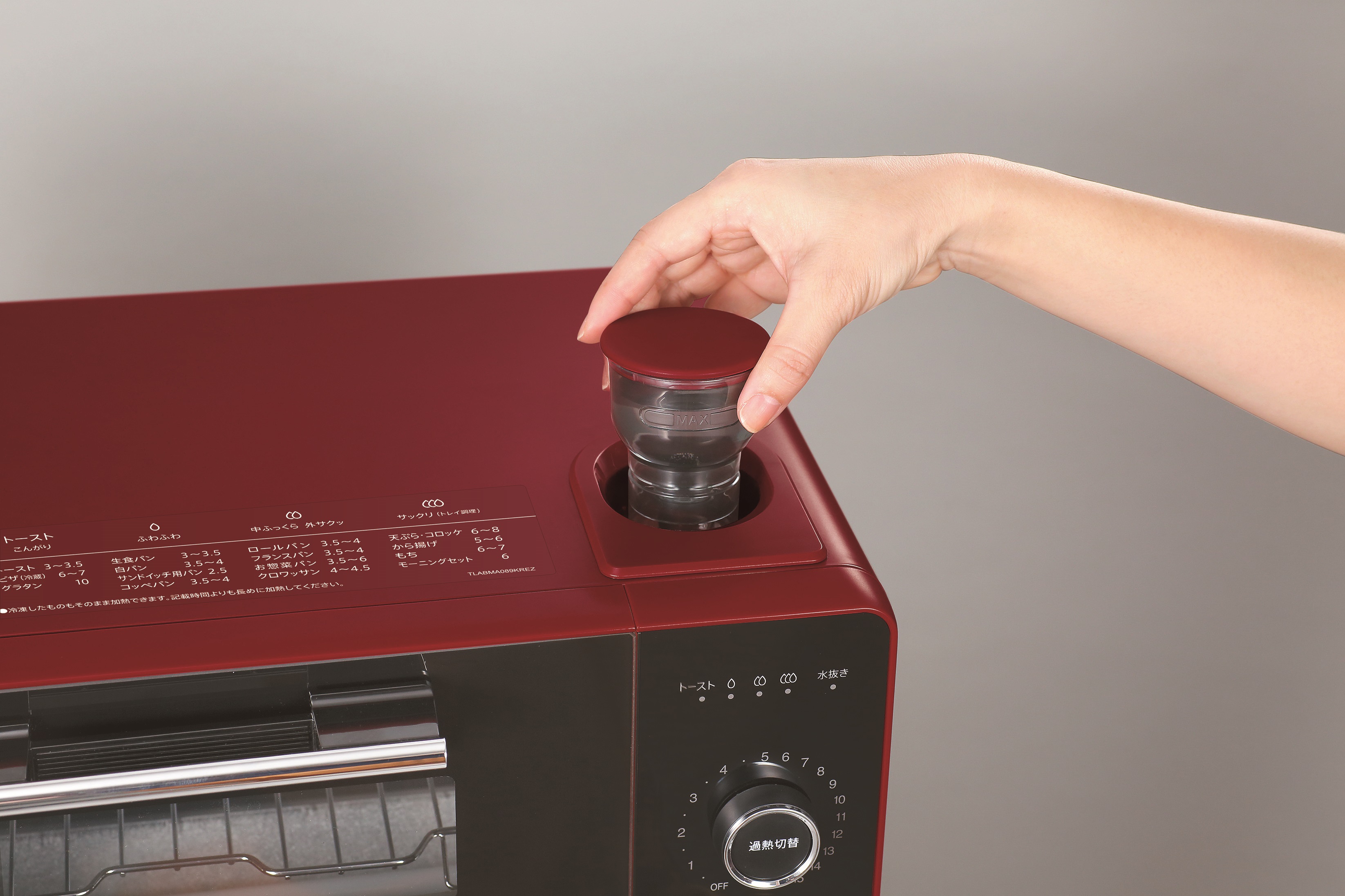 「ヘルシオ グリエ」は、水を入れてから使用します。100℃以上に加熱された水蒸気(過熱水蒸気)がメインの熱源となっており、食パンを包みこみ、表面をすばやく焼き上げつつ、内部まで水分を与えながら加熱するのが特徴。中はしっとり、そしてもちもちした食感が味わえます。