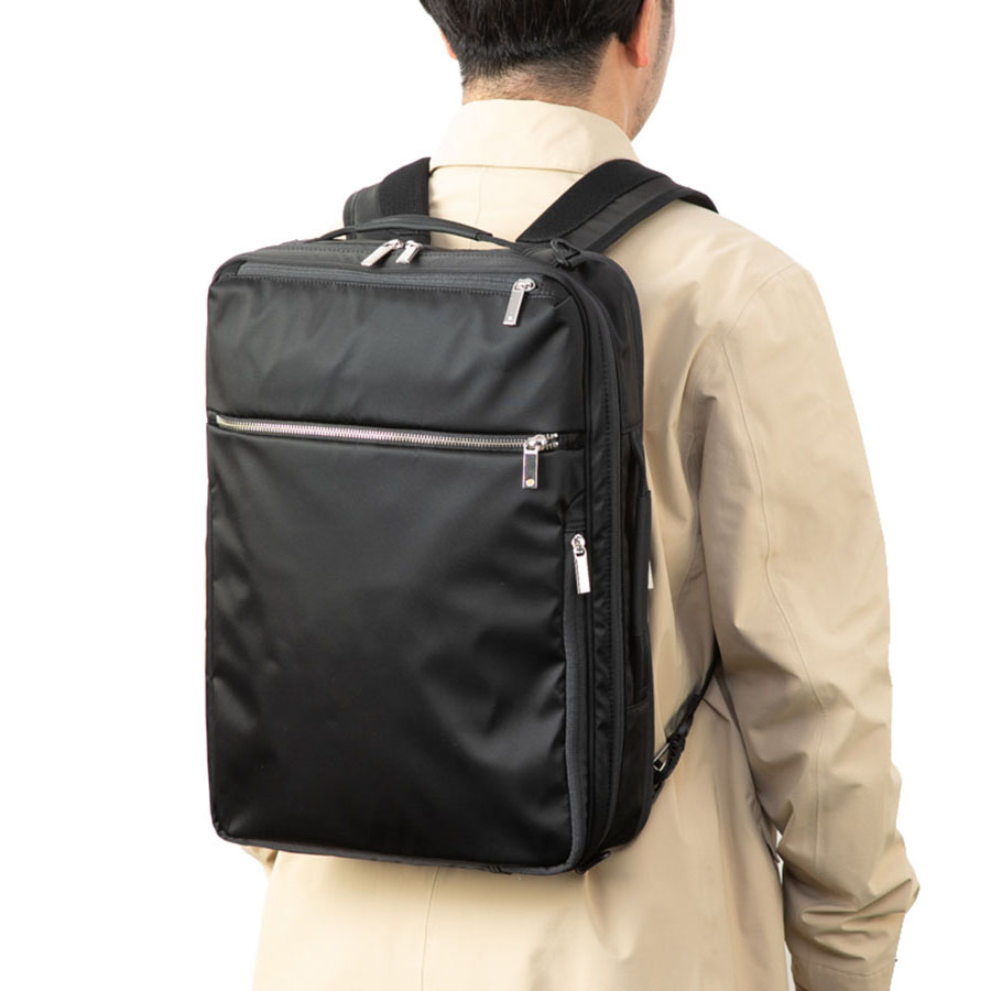 荷物が多い日の通勤や出張に最適なB4ファイル対応サイズで、PCスペースは傷がつかないようにパイル地を採用したり、ペットボトルや折りたたみ傘を固定できるホルダーを装備したりと、ホスピタリティあふれる3WAYバッグです。