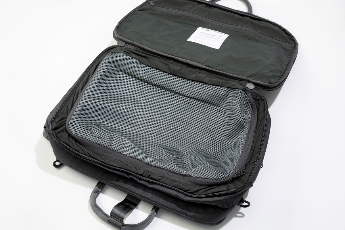 フルオープンのメインスペースは洋服などを収納しやすいスーツケースと同様の構造。マチが広がるエキスパンダブル機能を搭載しているため、日常と旅、どちらでも使える点が便利です。収納スペースもたっぷりあるので、わざわざポーチに小分けしなくてもOKな男らしく使える逸品です。